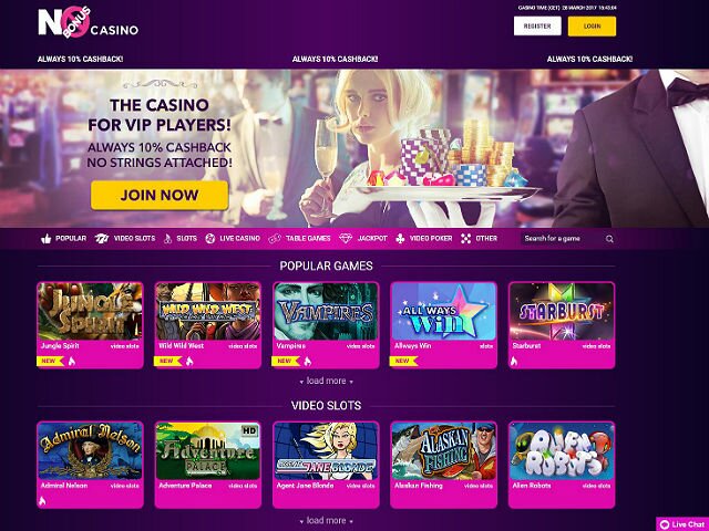 No Bonus Casino offers the best casino experience with wide selection of the best online games. And the casino is the right place for the high rollers players without any wagering requirement which means you can withdraw your funds.